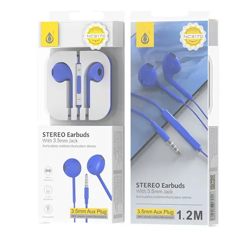 Auricular Box con Microfono y Boton multifuncion, 1.2m, Azul.