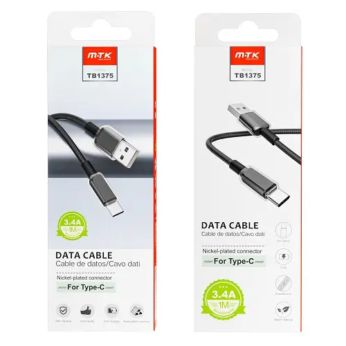 Cable de datos Hebe PVC trenzado para Type-C, 3.4A, 1M, Negro