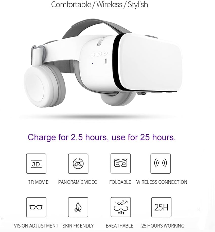 Auriculares Bluetooth VR: Estos lentes de realidad virtual están equipados con un auricular Bluetooth inalámbrico, y la calidad de sonido superior es realmente genial. Cuando utiliza gafas VR para jugar juegos de realidad virtual o ver películas de VR, disfrutará de transmisión de audio de alta velocidad inalámbrica.