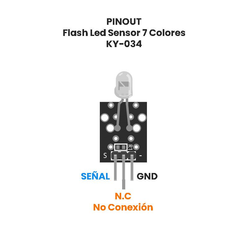 Este módulo permite generar una luz intensa de 7 colores diferentes de forma fácil y rápida. Es compatible con Arduino o con cualquier microcontrolador que posea un pin de 5V.