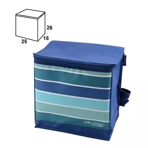 Bolso nevera poliéster en colores azules. Medida 25x18x28cm