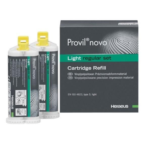 La humectabilidad de las estructuras dentales y las mucosas durante la toma de impresión. La calidad superficial de los modelos de escayola El resultado reproducción nítida de todos los detalles de las impresiones incluso en ambientes húmedos. Ausencia de alteraciones de volumen debidas a la absorción de agua. Desinfectable. Dimensionalmente estable Los modelos de escayola presentan superficies lisas y exentas de burbujas El sistema para una coordinación de tiempo perfecta fraguado rápido y normal. El nuevo Provil Novo convence por su calidad claramente mejorada y una banda de indicaciones ampliada. Los componentes Provil Novo establecen así estándares nuevos y satisfacen todas las exigencias en lo referente a individualidad y diversidad en los campos de indicación.